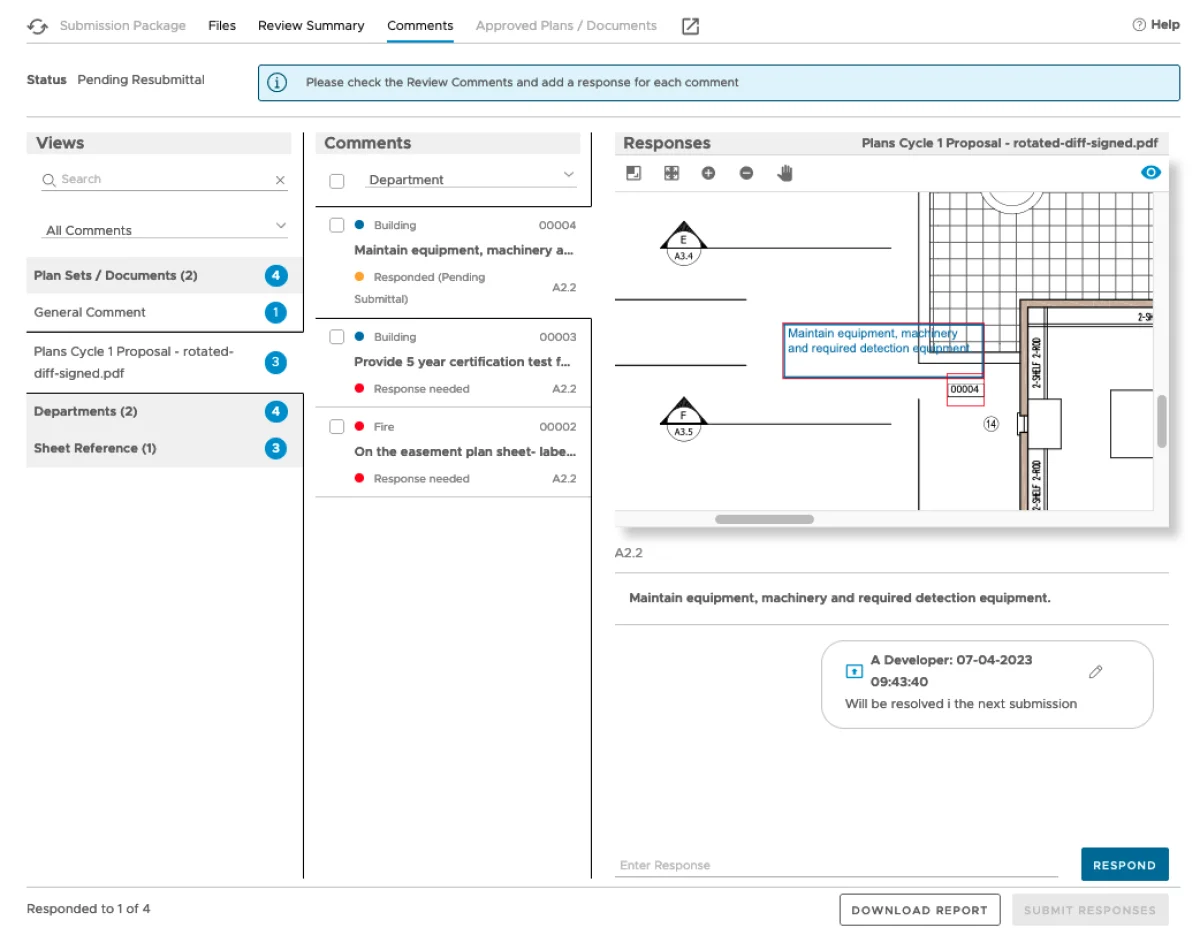 DigEplan Pro provides a single portal for the applicants to submit plans, monitor progress, and respond to corrections and comments in real time, so you can reduce the number of review cycles. An advanced submission intake follows policies to ensure plans and documents conform to standards to speed up the review cycle times.